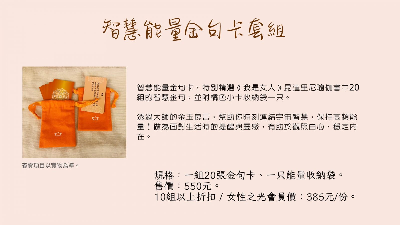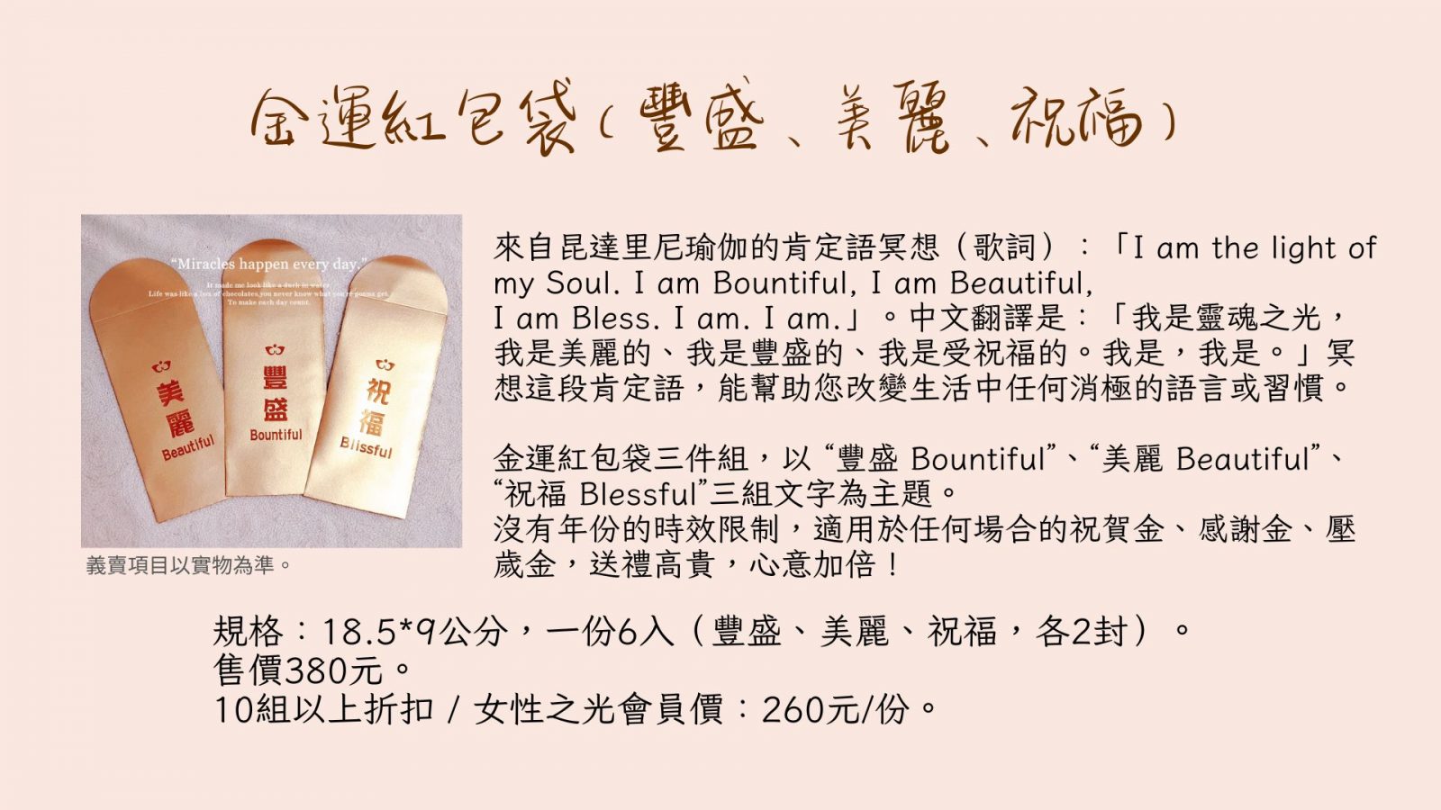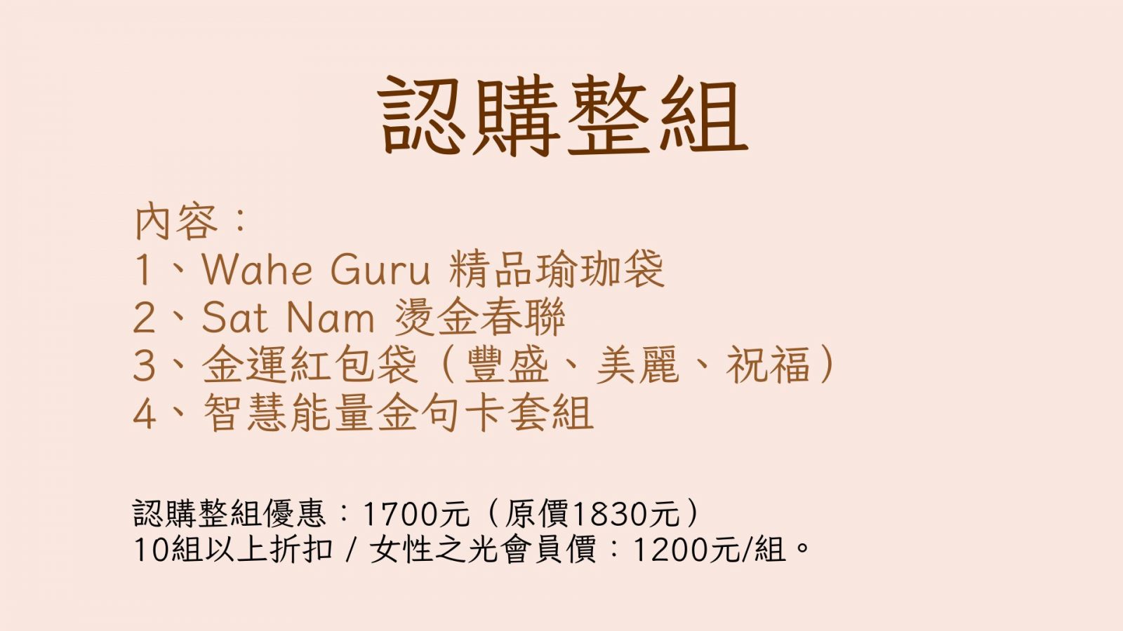 *不定期推出優惠組合價,邀請您追蹤關注FB粉專:女性之光在台灣 Mujer de Luz Taiwan