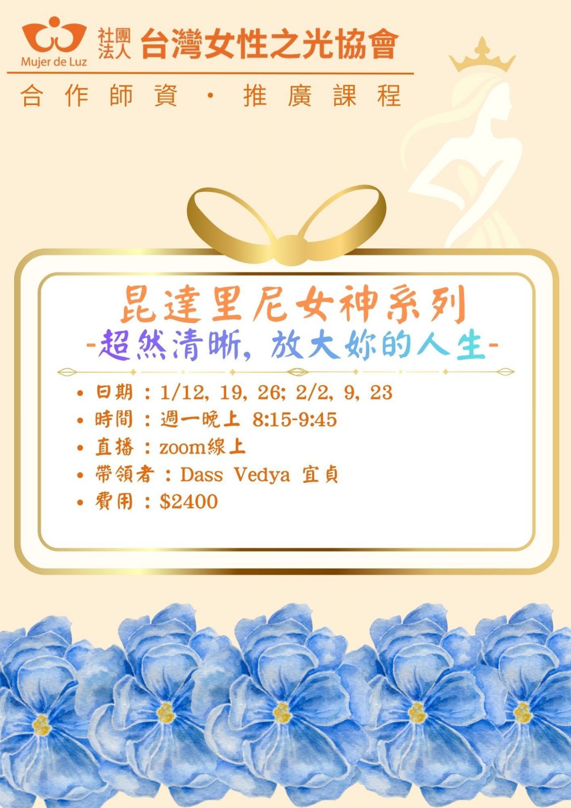 2025/05/19~2025/06/30 女神系列 容光煥發且優雅(線上/宜貞老師)